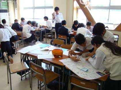 それぞれが行きたい見学場所を出し合い、どの交通機関を使うのか調べています。どの班も真剣に話し合いを続けています。良いコースが出来ると良いです。