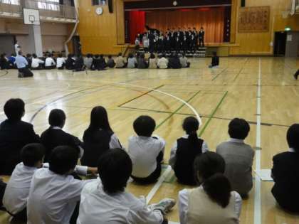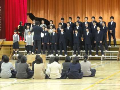 この日1年生は、3年生の合唱を聴かせてもらいました。
