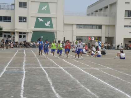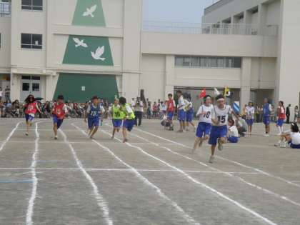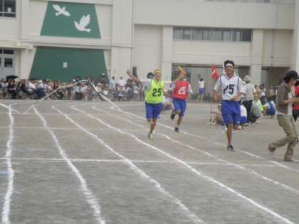 1年女子から3年女子までは100mずつで、1年生女子→男子→2年生女子→男子→3年生女子とバトンをつなぎ、最後の3年男子は200mです。