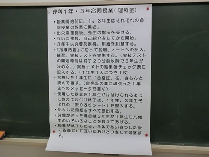 内容は「3年生が1年生にガスバーナーの使い方を伝える」。