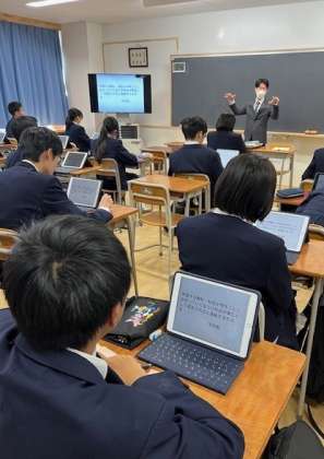 2年生は1時間目にキャリア学習をしています。今回は、上級学校について、クイズ形式も取り入れながら学んでいます。