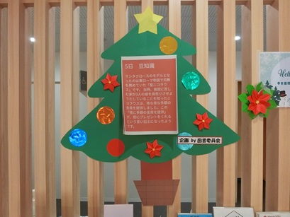 先月の生徒朝礼で図書委員会からアナウンスがあったアドベントカレンダーが動き出しています。