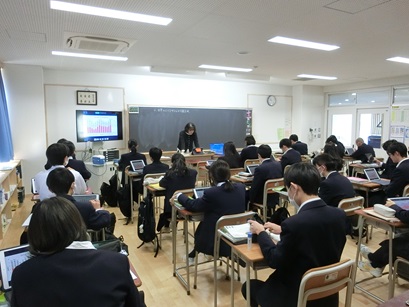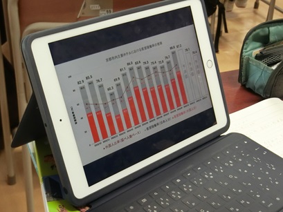 今日のねらいはオーバーツーリズムの理解。外国人観光客が多く訪れる京都を題材として、今日は京都の魅力をいろいろな角度から調べ、まとめる学習をしました。
