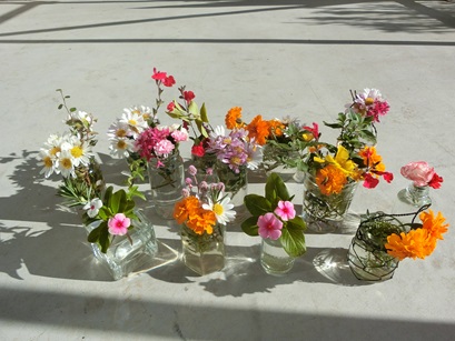 今日もガラスの小瓶に花を生けます。