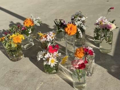 今日の花ボラも小瓶に花を生ける作業を行いました。