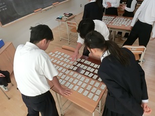 先輩の札を取る速さ、迫力に圧倒されていた1年生も少しずつ増えてきました。「先輩の様子を見学しています」という生徒もいます。