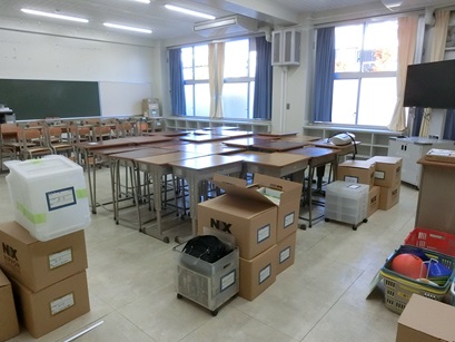 C組は教室、職員室がすべて移るので、荷物が盛りだくさん。