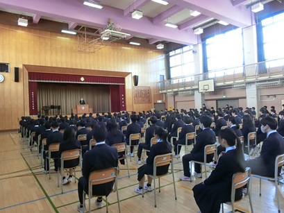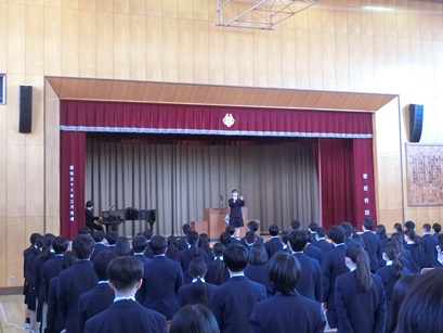 また、校歌の伴奏と指揮を担当している3年生の2人は今日が最後の機会でした。校歌斉唱後、毎回準備をしてくれたことを労いました。