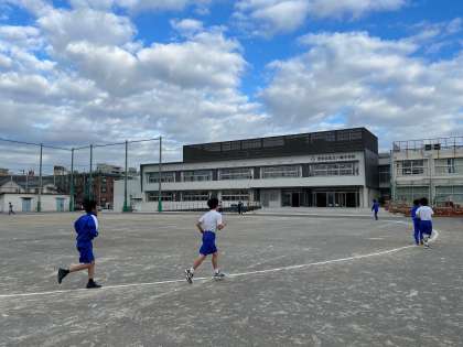 C組の朝マラソン。3学期は今朝から再開。冷たい空気の中、頑張っています。