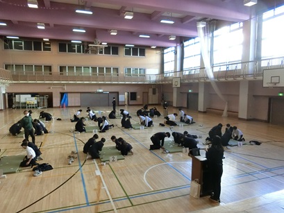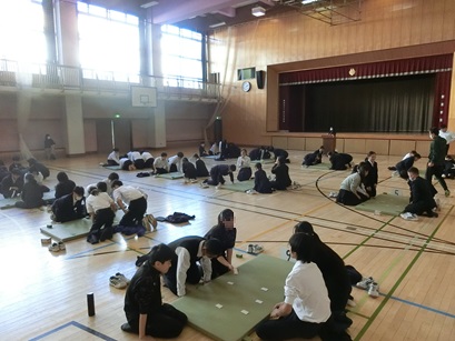 5、6時間目、1年生は体育館で百人一首大会を行いました。