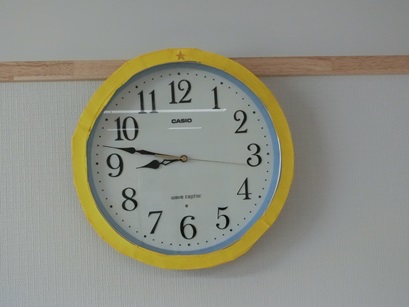 賞品は金の時計。生徒会が教室の時計にデコレーションをしました。