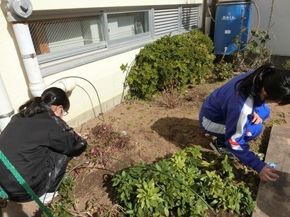 昼休みの時間に花ボランティア活動をしました。