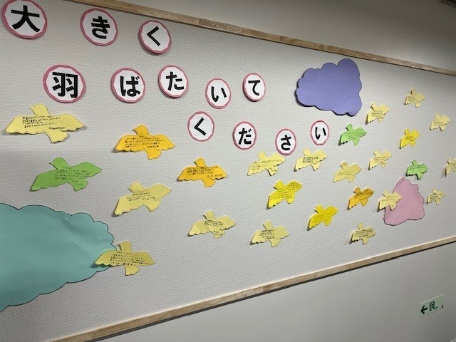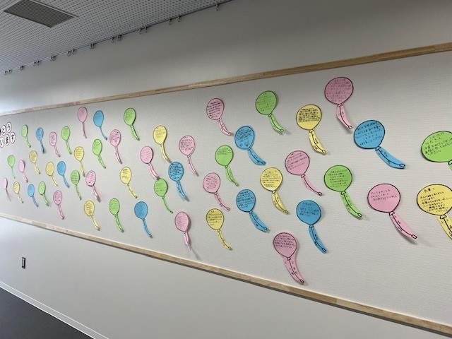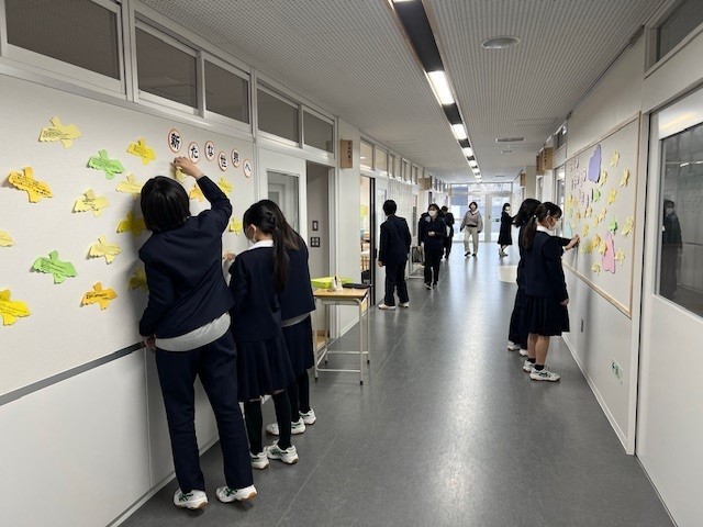 放課後、1、2年生が3年生に向けて書いたメッセージの掲示作業をしました。