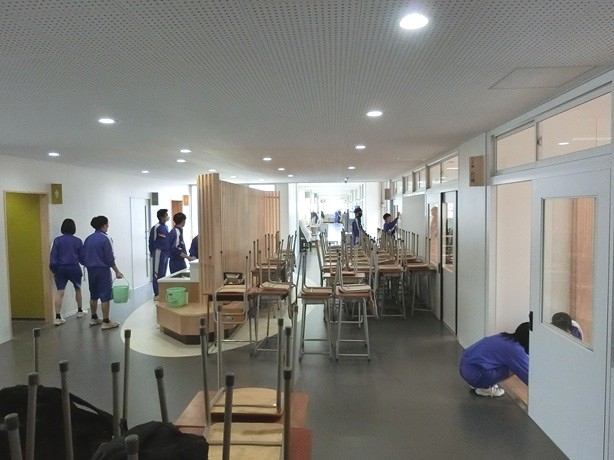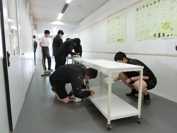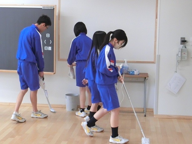 各クラスで清掃場所の分担をし、50分間作業を進めています。