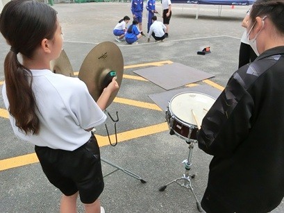 運動会の結果発表で行うドラムロールの練習をしていました。