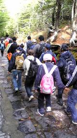 富士山五合目に到着しました。気温は14度と寒いですが、生徒たちはとても元気です。