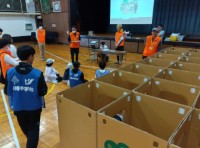 ウォークラリーは時間差をつけてスタート。室内イベントでは段ボール迷路の補佐、リバ...