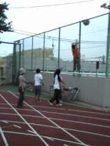 部活動合宿2日目、午後は雨。体育館の半面を野球部が使っている間、テニス部と陸上競...