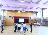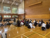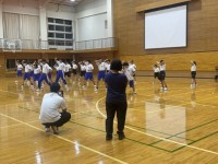 2、3時間目、C組は産能大の学生さんとの交流授業を行っています。 体育館でグル...