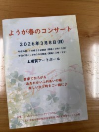 みなさん、こんにちは!ようがコミュニティクラブが主催する「ようが春のコンサート」のお知らせです。 今年の春も、地域のみなさんへ音楽を通して元気を届ける恒例イベントを開催します! 今回のコンサートは、3...