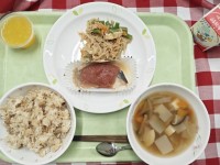 献立は「和歌山生姜そぼろごはん、鰆の梅味噌焼き、和歌山すろっぽ大根、紀州汁、みかんゼリー、牛乳」です。今日は和歌山県の郷土料理で献立を組み立てました。梅味噌焼きは、練り梅と白味噌、味醂、砂糖、酒を合わ...