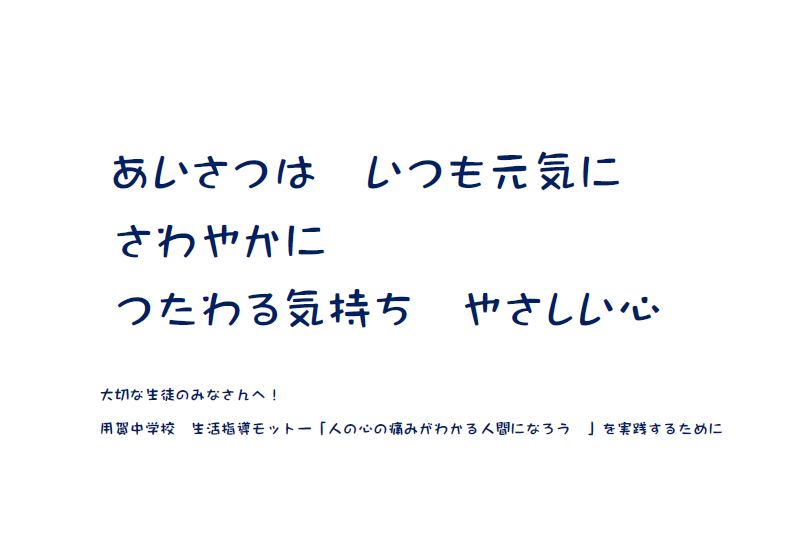 用賀中学校では、地域の小学校と連携しながら、「おはようコミュニケーション」と題した朝のあいさつ運動を継続して実施しています。本日は、京西小学校にて、中学生と小学生が一緒に登校する皆さんに向けて元気な「...