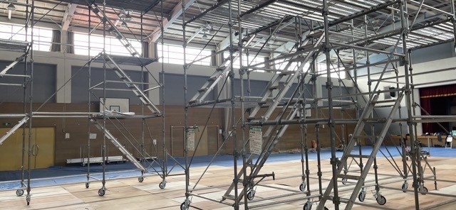 暑い夏がやってきました。そこで本校では、熱中症対策の一環として、体育館の屋根に「ハルクール」と呼ばれる遮熱用シートを設置しました。