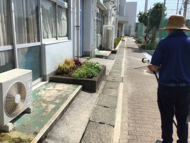 今週も真夏日が続く予報。各部活も午前中の比較的涼しい時間に実施していますが、やっぱり暑いです。外に水を撒いてもすぐに乾いてしまいます。大きめの水筒でもすぐに空に…。体育館では練習試合で部員に気合が入って、頑張っています。