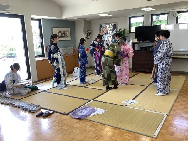 茶道部の活動で、講師の先生をお招きして浴衣の着付け体験を行いました。