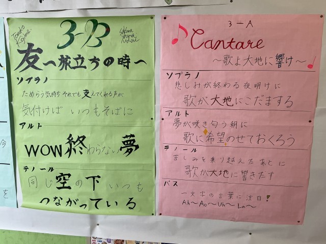 各クラス、パートで、重点的に歌いこみ、しっかり聴いて欲しいフレーズを話し合い、まとめました。