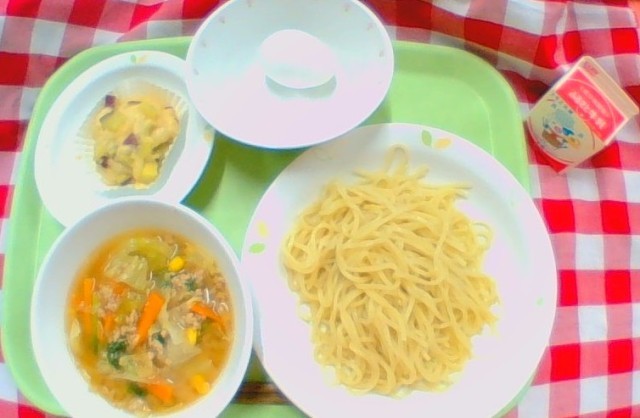 献立は 「つけ味噌ラーメン、ゆで卵、鬼まんじゅう、牛乳」です。 愛知県の名物「鬼まんじゅう」を作りました。さつま芋は、主食にも、おかずにも、スイーツにも使うことができます。今日は「蒸す」という調理方でしたが、ほんのり甘くて、美味しい「鬼まんじゅう」ができました。 *食材産地*** にんにく・・青森県 生姜・・・・高知県 豚挽肉・・・青森県 人参・・・・北海道 キャベツ・・茨城県 もやし・・・群馬県 コーン・・・北海道 長葱・・・・青森県 小松菜・・・茨城県 鶏卵・・・・群馬県 さつま芋・・熊本県