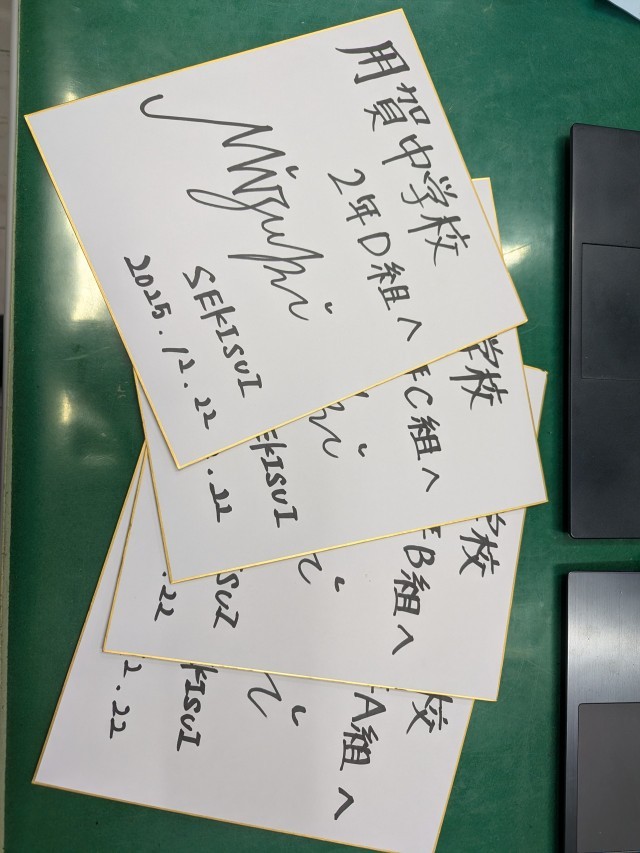 その後、生徒は給食の時間となりましたが、その時にも各教室に来ていただき、質問や感想など交流をする時間を取っていただきました