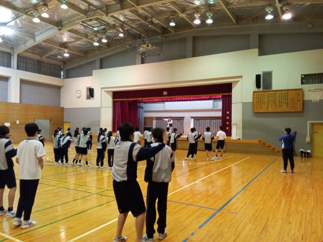 まず体育の授業では、専門の先生によるダンスレッスンが行われました。音楽に合わせて体を動かす楽しさを感じながら、生徒たちは笑顔いっぱいで取り組んでいました。普段の体育とはひと味違う体験に、体育館中が活気にあふれています。