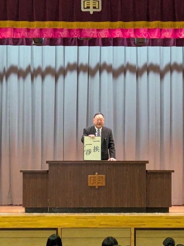 「挨拶」という言葉は、もともと仏教用語が語源であり、自分の心を開き、相手の心に寄り添う行いであることが紹介されました。挨拶は単なる言葉のやりとりではなく、相手を大切に思う気持ちを形にした行動であることを、改めて考える時間となりました。