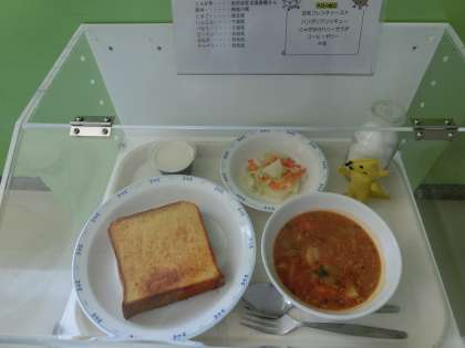 投入フレンチトースト・ハンガリアンシチュー・じゃが芋のハニーサラダ・コーヒーゼリー・牛乳