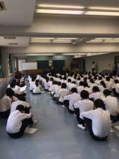 2年は特活室で学年集会を行いました。職場体験などのお話がありました。どちらの学年も立派な態度で話を聞いていました。