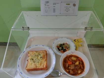 ツナポテト—スト・ボルシチ・ポパイサラダ・牛乳