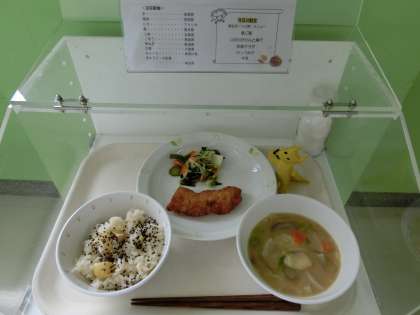 栗ご飯・いかのかりんと揚げ・和風サラダ・ひっつみ汁・牛乳