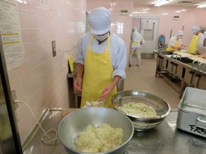 チリビーンズライス・ポテトのハニーサラダ・ココアプリン・牛乳