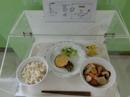茶飯・おでん・ちくわの磯部揚げ・さつま芋の天ぷら・ひとしお野菜・牛乳
