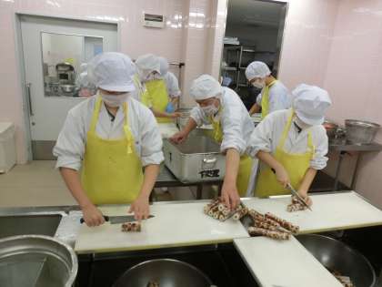調理さんたちから、包丁使いのレクチャーを受けたり、どうしてそう切るのか?を教えてもらったり…