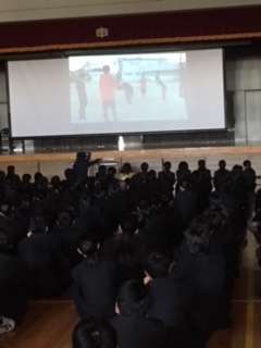 12月の生徒朝会は各委員長の発表の後、保健委員会から感染症予防のビデオがありました。準備に1ヶ月以上かけていた素晴らしいものでした。