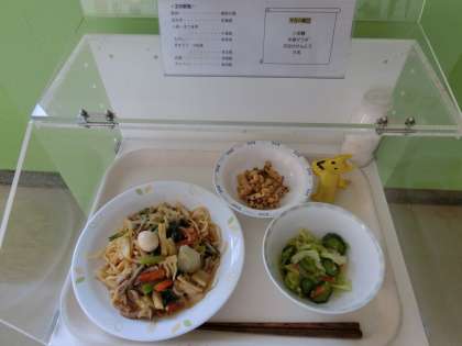 八宝麺・中華サラダ・お豆のかりんとう・牛乳