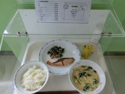 きびご飯・ぶりの照り焼き・磯香和え・かき玉汁・牛乳