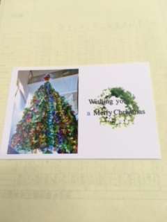 先日折り紙ツリーのイベントに学校全体で参加しました。そのお礼に折り紙ツリーの写真付きのカードが届きました。