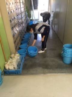 美化委員を中心に皆積極的に掃除していました。この後、美化委員はワックスを教室にかけます。