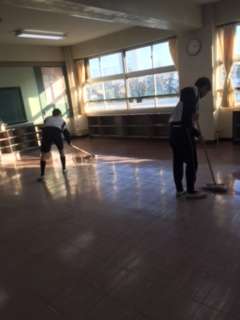 生徒が下校した後、美化委員がワックスがけをしました。