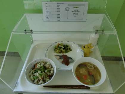 五目御飯・さわらのごまみそ焼き・和風サラダ・ひっつみ汁・牛乳