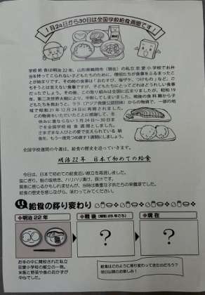 この1週間は、学校給食の移り変わりなども献立と共に伝えていく予定です。