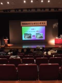 烏山区民会館でガリレオコンテストが行われました。2800点の作品から9点が選出され発表しました。本校の生徒も発表しました。